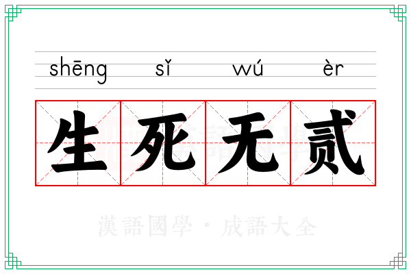 生死无贰,汉语成语,读音是(shēng sǐ wú èr 朗读)。ABCD式组合,紧缩式结构,生死无贰意思是:至死没有二心。指十分坚定。出自《论立宪与外交之关系》。一般作谓语、定语、状语,用于人的立场等。