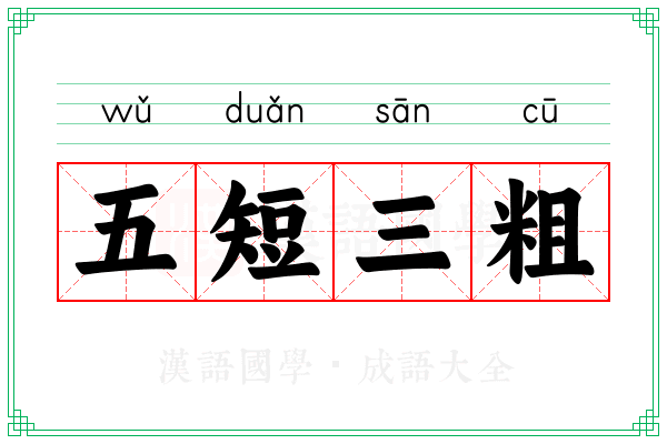 出处:清・无名氏《刘公案》第三回:“姓陈名叫大勇,年有三十五六岁,生的五短三粗,相貌魁伟。”