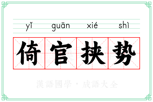 出处:元・关汉卿《玉镜台》第三折:“你说领着省事,掌着军权,居着高位,又道会亲处倚官挟势。”元・武汉臣《玉壶春》第四折:“从公道,依正理,怎做得倚官挟势。”