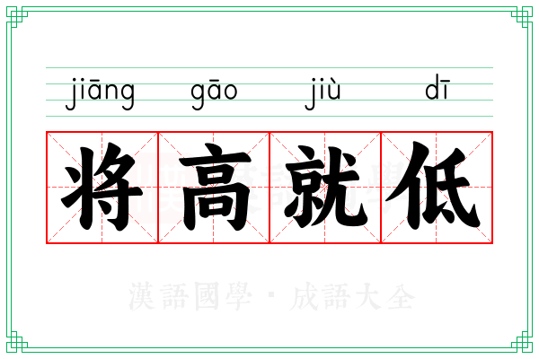 例子:清·褚人获《隋唐演义》第四回:这种人留在京中,也没有用处,都跟我到太原去,将高就低,也还过了日子。