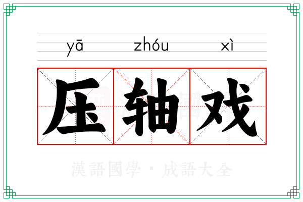 出处:鲁迅《大观园的人才》:“大观园里的压轴戏是刘姥姥骂山门。那是要老旦出场的。”