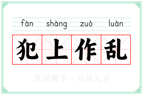 对抗朝廷,冒犯尊长。《明・孔尚任・桃花扇・第二十四出》:“那黄得功一介武夫,还知报效,俺们倒肯犯上作乱不成。”
