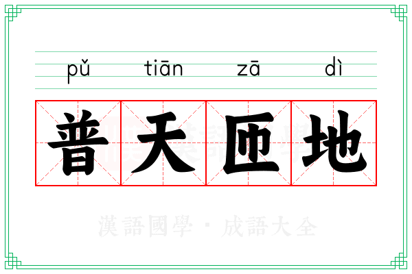 普天匝地,汉语成语,读音是(pǔ tiān zā dì 朗读)。ABCD式组合,联合式结构,普天匝地意思是:满天遍地,普天下。出自元・耶律楚材《和南质张学士敏之见赠》诗。一般作宾语、定语,用于书面语。