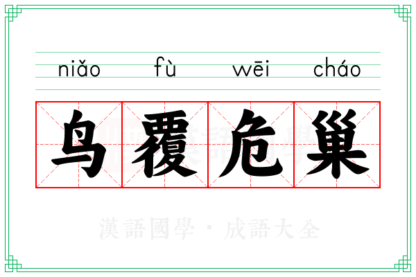 鸟覆危巢,汉语成语,读音是(niǎo fù wēi cháo 朗读)。ABCD式组合,紧缩式结构,鸟覆危巢意思是:鸟巢因建于弱枝而倾覆。比喻处境极端危险。出自唐・李商隐《行次昭应县道上》诗。一般作宾语、定语,用于人的处境。