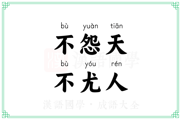 出处:中庸:“上不怨天,下不尤人。”论语宪问篇:“子曰:『不怨天,不尤人,下学而上达;知我者,其天乎!』”