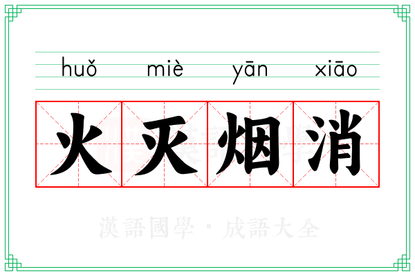 火苗熄灭,烟云消散。比喻事物消失净尽,不留一点痕迹。亦作“烟消火灭”。