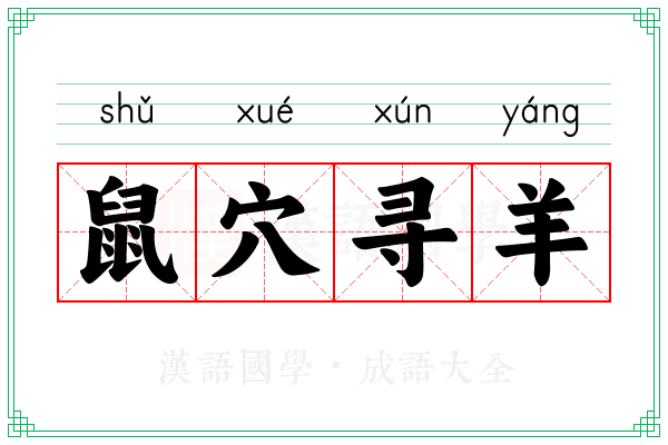 鼠穴寻羊,汉语成语,读音是(shǔ xué xún yáng 朗读)。ABCD式组合,紧缩式结构,鼠穴寻羊意思是:比喻没有功效的做法。出自清・袁枚《随园诗话补遗》第四卷。一般作宾语、定语,用于比喻句。