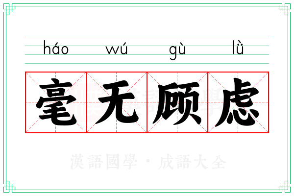 毫无顾虑,常用汉语成语,读音是(háo wú gù lǜ 朗读)。ABCD式组合,动宾式结构,毫无顾虑意思是:丝毫没有后顾之忧。出自毛泽东《必须注意经济工作》。一般作谓语、定语、状语,用于处事。