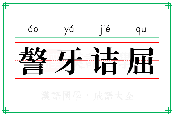 謷牙诘屈,汉语成语,读音是(áo yá jié qū 朗读)。ABCD式组合,謷牙诘屈意思是:同“诘屈聱牙”。謷,通“聱”。出自语出唐・韩愈《进学解》。