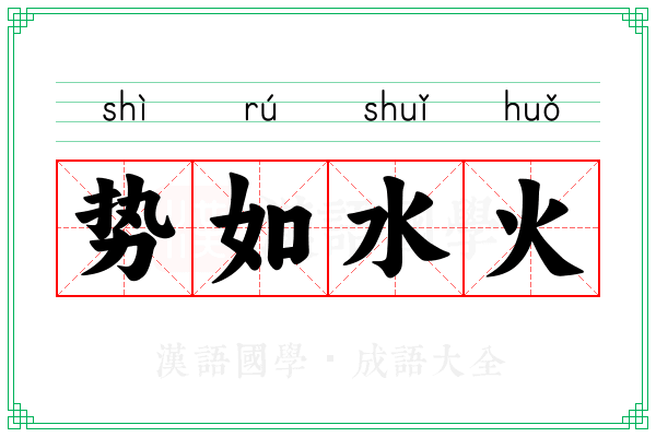 势如水火,汉语成语,读音是(shì rú shuǐ huǒ 朗读)。ABCD式组合,主谓式结构,势如水火意思是:形容双方就像水火一样互相对立,不能相容。出自西晋・陈寿《三国志・蜀志・魏延传》。