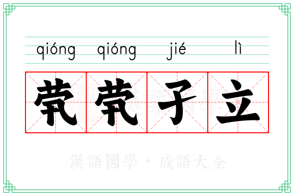 形容人孤苦伶仃,没有依靠的样子。《晋・李密・陈情表》:“茕茕孑立,形影相吊。”唐・柳宗元・寄许京兆孟容书:「茕茕孑立,未有子息,荒隅中少士人女子,无与为婚。