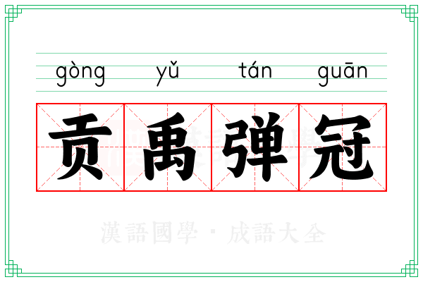 弹冠,掸去帽子上的灰尘,表示准备做官。贡禹弹冠指汉朝贡禹和王吉为友,当王吉为官时,贡禹亦出仕相佐,所以世称“王阳在位,贡公弹冠”。典出汉书・卷七十二・王吉传。比喻乐于辅佐政治意念相同的人。《唐・李德裕・授狄兼谟兼益王傅郑东之兼益王府长史制》:“有爰丝正席之忠,以东之取舍俟时,有贡禹弹冠之操,皆行不苟合。”