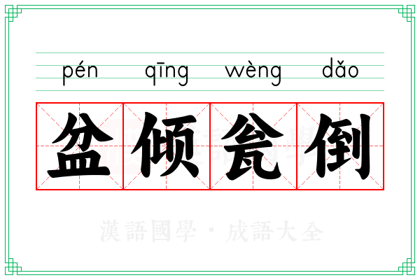 盆瓮都倾倒过来。形容水、酒等液体急速下泻。