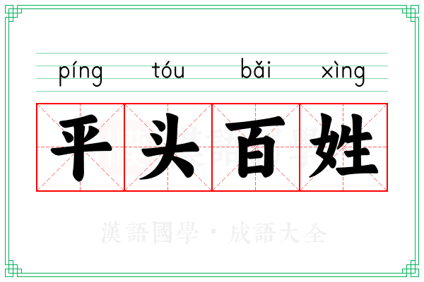 普通庶民。《儒林外史・第三回》:“家门口这些做田的,扒粪的,不过是平头百姓,你若同他拱手作揖,平起平坐,这就是坏了学校规矩,连我脸上都无光了。”