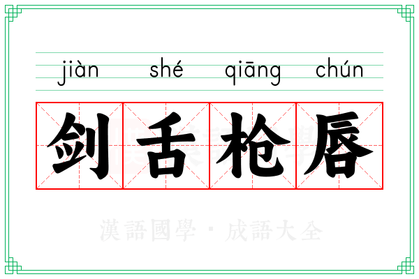 剑舌枪唇,汉语成语,读音是(jiàn shé qiāng chún 朗读)。剑舌枪唇意思是: