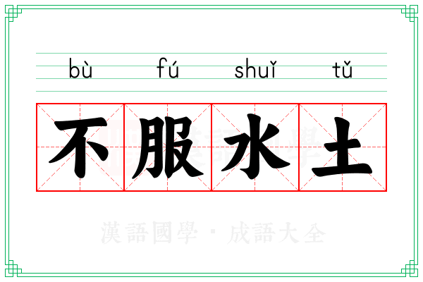 用法:动宾式;作谓语、定语;形容不适应外地的气候与饮食。