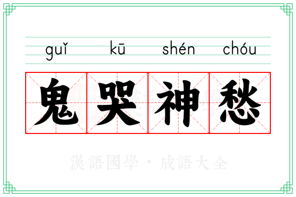 例子:明·冯梦龙《警世通言》第40卷:“出匣时,霜寒雪凛,耀光处,鬼哭神愁,乃天赐之至宝也。”