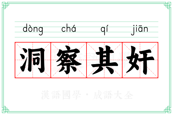 看透对方的阴谋诡计。《镜花缘・第十二回》:“倘明哲君子,洞察其奸,于家中妇女不时正言规劝,以三姑六婆视为寇仇,诸事预为防范,毋许入门,他又何所施其伎俩?”亦作“洞烛其奸”。