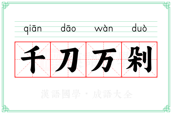 出处:元・无名氏《争报恩》第三折:“干着你六问三推,生将我千刀万剁。”