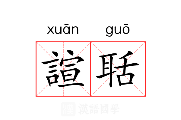 諠 [ xuān ] 1. 同“喧”。 2. 古同“谖”,欺诈。 [更多解释]