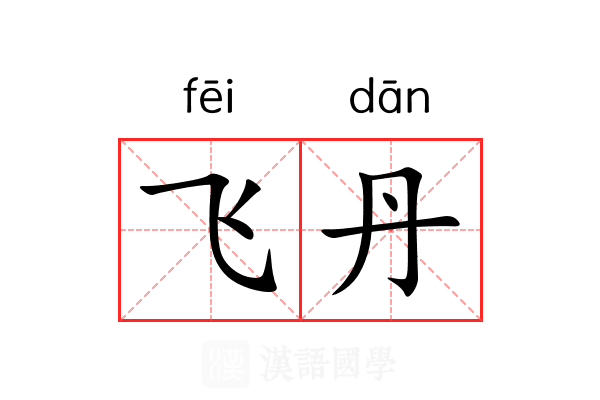 飞丹的意思是:①.道家炼制的丹药。②.犹飞红。绯红。
