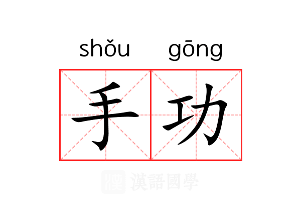 拼音 shǒu 部首 手 总笔画 4手 [ shǒu ] 1. 人使用工具的上肢前端。 如 手心。棘手(形容事情难办,像荆棘刺手)。着(zhuó)手(开始做,动手)。手不释卷。 2. 拿着。 如 人手一册。 3. 亲自动手。 如 手稿。手迹。手令。手书(a.笔迹;b.亲笔书信)。 4. 技能、本领。 如 手法(技巧,方法)。手段。留一手。 5. 做某种事情或擅长某种技能的人。 如 国手。扒手。生产能手。 6. 小巧易拿的。 如 手枪。手册。 [更多解释]