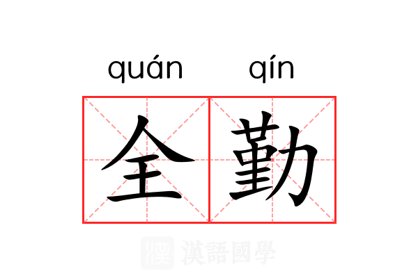 拼音 qín 部首 力 总笔画 13勤 [ qín ] 1. 做事尽力,不偷懒。 如 勤劳。勤快。勤奋。勤政(勤奋于政事)。勤谨。勤勉。勤恳。克勤克俭。 2. 经常。 如 勤密(频繁)。来往很勤。 3. 上班,事务。 如 勤务。勤杂。出勤。后勤。 4. 担心,忧虑。 如 勤恤(忧虑怜惜)。 5. 帮助。 如 勤王。 6. 姓。 [更多解释]