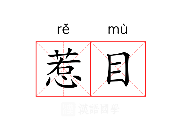 拼音 mù 部首 目 总笔画 5目 [ mù ] 1. 眼睛。 如 目光。醒目。历历在目。目指气使(用眼光和气色示意以役使别人,形容骄横傲慢的神志。亦作“颐指气使”)。 2. 看,视。 如 目语。目论(喻没有自知之明或浅陋狭隘的见解)。 3. 想要达到的地点、境地或想要得到的结果。 如 目的(dì)(亦指箭靶的中心)。 4. 大项中再分的小项。 如 条目。纲举目张。 5. 名称。 如 数目。巧立名目。 6. 标题。 如 目录。 7. 生物学分类系统上所用的等级之一,在“纲”以下,“科”以上。 如 鸟纲中有雁形目和鸡形目。 8. 孔眼。 如 网目。 9. 指为首的人。 如 头目。 [更多解释]