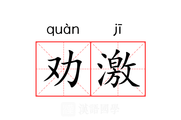 拼音 jī 部首 水 总笔画 16激 [ jī ] 1. 水受阻遏,震荡而涌或飞溅。 如 冲激。激荡。激浊扬清(冲击污水,让清水上来,喻打击坏人坏事,奖励好人好事)。 2. 冷水突然浇淋或冲、泡食物。 如 激酸菜。 3. 鼓动,使人的感情冲动。 如 刺激。激励。 4. 感情冲动。 如 感激。激动。激昂慷慨。 5. 急剧的,强烈的。 如 激烈。激进。 6. 过分直率。 如 激厉。激切。 7. 〔~光〕某些物质的原子中的粒子受光或电刺激,使低能级的原子变成高能级原子,而辐射出相位、频率、方向等完全相同的光,称“激光”。亦称“莱塞”、“镭射”。 8. 〔~光器〕产生激光的装置。 9. 〔~素〕内分泌腺分泌的物质。亦称“荷尔蒙”。 10. 鲜明。 如 唇如激丹。 [更多解释]