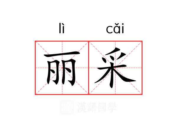 拼音 lì,lí 部首 一 总笔画 7丽 [ lì ] 1. 好看,漂亮。 如 美丽。秀丽。明丽。绚丽。富丽。丽质(女子美好的品貌)。风和日丽。 2. 附着。 如 附丽。 丽 [ lí ] 1. 〔高~〕朝鲜历史上的王朝,旧时习惯上沿用指称朝鲜。 2. 同“罹”,遭遇。 [更多解释]