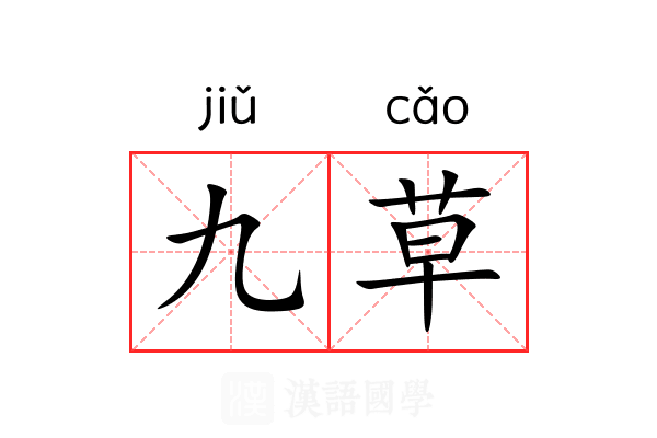 拼音 cǎo 部首 艸 总笔画 9草 [ cǎo ] 1. 对高等植物中除了树木、庄稼、蔬菜以外的茎干柔软的植物的统称;广义指茎干比较柔软的植物,包括庄稼和蔬菜。 如 青草。野草。茅草。水草。花草。草鞋。草堂(茅草盖的堂屋,旧时文人以此自称山野间的住所,有自谦卑陋的意思)。草原。草坪。草行露宿。草菅人命。 2. 特指用作燃料、饲料的稻麦之类的茎叶。 如 草料。柴草。稻草。 3. 粗糙,不细致。 如 草率(shuài )。草鄙(粗野朴陋)。草具(粗劣的食物)。 4. 汉字的一种书体。 如 草书。草字(亦为旧时谦称自己的别名)。章草(草书的一种,笔画保存了一些隶书的笔势,因其最初用于奏章,故名“章草”)。狂草。草体(❶指汉字草书;❷拼音文字的手写体,有大草、小草之分)。 5. 打稿子,亦指稿子;引申为初步的,非正式的。 如 草拟。草诏(为皇帝草拟诏书)。 6. 荒野,原野,引申为在野的、民间的。 如 草野。草莽。草寇。草贼。 7. 雌性的(用于某些家畜、家禽)。 如 草鸡。 [更多解释]