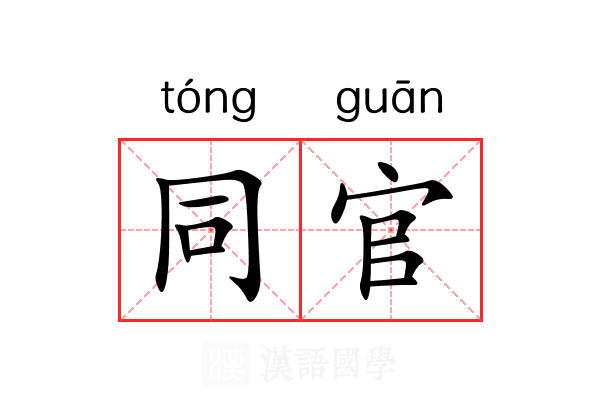 明•屠隆 《綵毫记·脱靴捧砚》:“臣不知圣上呼召,与同官共醉酒楼,死罪!死罪!”《老残游记》第十五回:“我辈都是同官,不好得罪他的; 补翁 是方外人,无须忌讳。”官职名位相同。