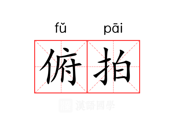 拼音 fǔ 部首 人 总笔画 10俯 [ fǔ ] 1. 向下,低头,与“仰”相对。 如 俯身。俯视。俯瞰。俯首。俯临。俯拾即是。俯仰。 2. 潜伏,卧伏。 如 季秋之月“蛰虫咸俯在内”。 3. 旧时公文及书信对上级或尊长的敬辞。 如 俯允。俯念。俯恤(请求对方体恤)。俯察。俯顺。 [更多解释]