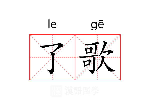 拼音 liǎo,le 部首 亅 总笔画 2了 [ liǎo ] 1. 明白,知道。 如 明了。一目了然。 2. 完结,结束。 如 完了。了结。 3. 在动词后,与“不”、“得”连用,表示可能或不可能。 如 看不了。办得了。 4. 与“得”、“不得”前后连用,表示异乎寻常或情况严重。 如 那还了得! 了 [ le ] 1. 放在动词或形容词后,表示动作或变化已经完成。 如 写完了。 2. 助词,用在句子末尾或句中停顿的地方,表示变化,表示出现新的情况。 如 刮风了。 [更多解释]