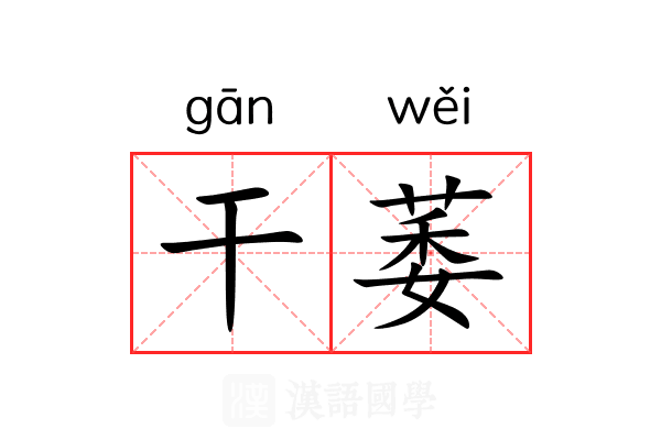 拼音 gān,gàn 部首 干 总笔画 3干 [ gān ] 1. 触犯,冒犯,冲犯。 如 干扰。干涉。干预(亦作“干与”)。森然干霄。 2. 追求,求取,旧指追求职位俸禄。 如 干禄。干仕。 3. 关连,涉及。 如 干系。互不相干。 4. 盾,古代抵御刀枪的兵器。 如 大动干戈。 5. 古代用以记年、记月、记日、记时(亦作编排次序)的十个字(甲乙丙丁戊己庚辛壬癸)。 如 天干。干支。 6. 涯岸,水边。 如 “河之干兮”。 7. 个数。 如 若干。 8. 没有水分或水分少,跟“湿”相对。 如 干燥。干柴。 9. 干的食品或其他东西。 如 饼干。豆腐干。 10. 枯竭,尽净,空虚。 如 干尽。干杯。 11. 副词,空,徒然,白白地。 如 干着急。 12. 指没有血缘或婚姻关系,拜认的亲属。 如 干亲。 13. 当面说气话或抱怨的话使对方难堪。 如 我又干了他一顿。 14. 〈方〉慢待;置之不理。 如 把客人干在一旁。 15. 〔~将(jiàng)〕古剑名。 16. 姓。 干 [ gàn ] 1. 事物的主体或重要部分。 如 树干。躯干。干线。 2. 做。 如 干事。说干就干。 3. 有才能的,善于办事的。 如 干才。干员。干练。 4. 方言,坏、糟。 如 事情要干。 [更多解释]