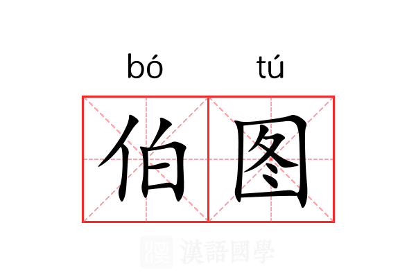 拼音 bó,bǎi,bà 部首 人 总笔画 7伯 [ bó ] 1. 兄弟排行次序。 如 伯仲(指兄弟的次第,喻事物不相上下)。 2. 父亲的哥哥。 如 伯伯。伯父。伯母。 3. 对父辈戚友的尊称。 如 老伯。世伯。 4. 封建制度五等爵位的第三等。 如 伯爵。 5. 旧时对文章、道德足为表率者的尊称。 如 “海内文章伯”。 6. 姓。 伯 [ bǎi ] 1. 〔大~子〕丈夫的大哥。 伯 [ bà ] 1. 古同“霸”,古代诸侯联盟的首领。 [更多解释]