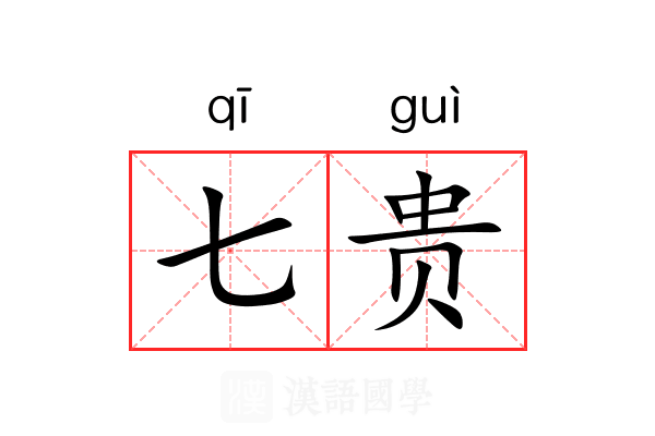 七贵,西汉时七个以外戚关系把持朝政的家族的统称;另指隋末洛阳人称段达﹑王世充﹑元文都﹑卢楚﹑皇甫无逸﹑郭文懿﹑赵长文为七贵。