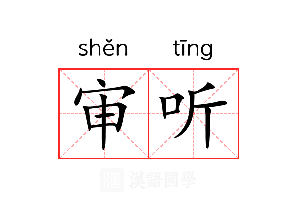 拼音 shěn 部首 宀 总笔画 8审 [ shěn ] 1. 详细,周密。 如 审慎。审视。 2. 仔细思考,反复分析、推究。 如 审查。审定。审订。审核。审美。审计。审评。审时度势。 3. 讯问案件。 如 审理。审判。审讯。公审。 4. 知道。 如 不审近况如何? 5. 一定地,果然。 如 审如其言。 [更多解释]