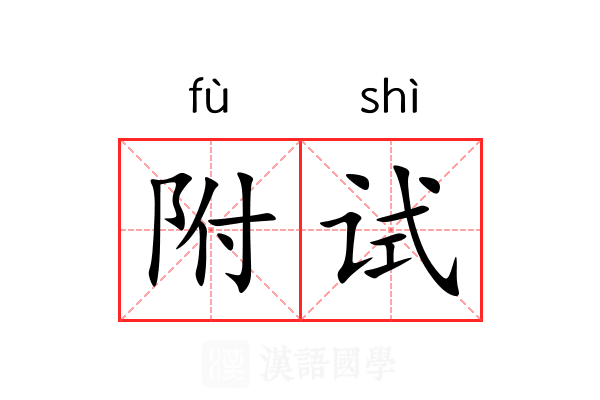 拼音 fù 部首 阜 总笔画 7附 [ fù ] 1. 另外加上,随带着。 如 附体。附件。附带(a.另外有所补充的;b.非主要的)。附庸。附会(a.把不相关连的事勉强拉到一起,如“牵强附附”;b.组织文章、布局谋篇、命意修辞等创作活动,如“精思附附,十年乃成”)。附赘悬疣。 2. 同意,赞同。 如 随声附和。附议。 3. 捎带。 如 “一男附书至”。 4. 靠近。 如 附近。附耳低言。 5. 依从。 如 依附。归附。趋炎附势。 [更多解释]