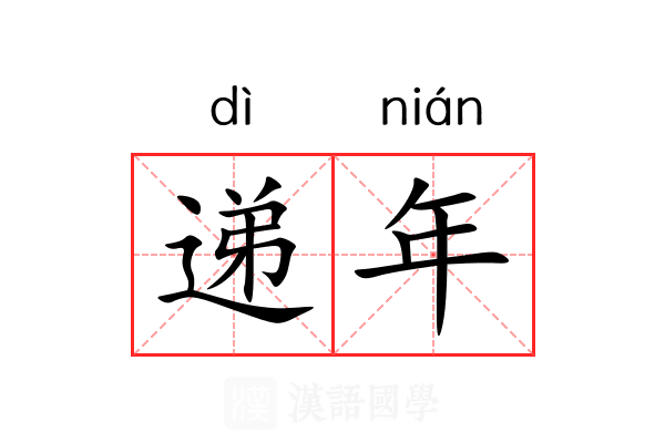 拼音 nián 部首 干 总笔画 6年 [ nián ] 1. 地球绕太阳一周的时间。 如 一年。三年五载。 2. 每年的。 如 年会。年鉴。年利。年薪。 3. 一年的开始。 如 年节。新年。 4. 有关年节的(用品)。 如 年画。年礼。年货。 5. 时期,时代。 如 近年。年华。年号(a.帝王用的纪年名称;b.公元纪年名称)。年限。年深日久。 6. 收成。 如 年成。年景。年谨。荒年。 7. 岁数。 如 年纪。年事(岁数)。年高。年轮。 8. 人一生所经年岁的分期。 如 幼年。童年。青年。壮年。中年。老年。 9. 科举时代同年考中者的互称。 如 年兄。年谊(同年登科的关系)。 10. 姓。 [更多解释]
