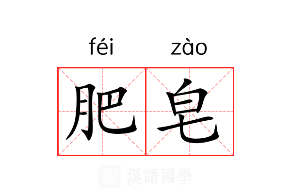 亦作“肥皁”。古代用皂荚或肥珠子等捣烂制成丸,用以洗涤去污者,均称“肥皂”。参见“肥皂荚”、“肥珠子”。