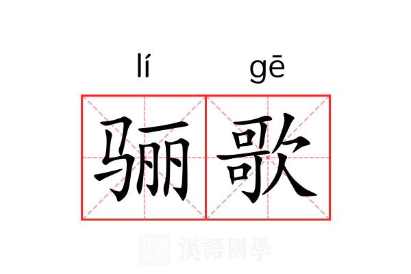 骊歌是一个汉语词汇,读音为lí gē,是指告别的歌(离别时唱的歌)。逸诗有《骊驹》篇云:“骊驹在门,仆夫具存;骊驹在路,仆夫整驾。”客人临去歌《骊驹》,后人因而将告别之歌称之为“骊歌”。