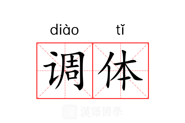 拼音 tiáo,diào,zhōu 部首 讠 总笔画 10调 [ tiáo ] 1. 搭配均匀,配合适当。 如 调和。调谐。风调雨顺。饮食失调。 2. 使搭配均匀,使协调。 如 调配。调味。 3. 调停使和解(调解双方关系)。 如 调停。调处。 4. 调剂。 如 以临万货,以调盈虚。 5. 调理使康复。 如 调养。调摄。 6. 调教;训练。 如 有膂力,善调鹰隼。 7. 挑逗;戏弄。 如 调笑。调情。调戏。酒后相调。 调 [ diào ] 1. 乐曲;乐谱。 如 曲调。采菱调。 2. 乐曲定音的基调或音阶。 如 C大调。五声调式。 3. 语音上的声调。 如 调号。调类。 4. 说话的腔调。 如 南腔北调。 5. 口气;论调。 如 一副教训人的调。两人人的发言是一个调。 6. 人所蕴含或显露出来的风格、才情、气质。 如 情调。格调。 7. 选调;提拨。 如 从基层调选干部。 8. 调动。 如 岗位调整。 9. 征集;征调。 如 调有余补不足。 10. 调查。 如 调研。内查外调。 11. 提取、调取(文件、档案等)。 如 调档。 12. 调换。 如 调座位。 调 [ zhōu ] 1. 朝,早晨。 如 《广韵•平尤》:“调,朝也。” [更多解释]