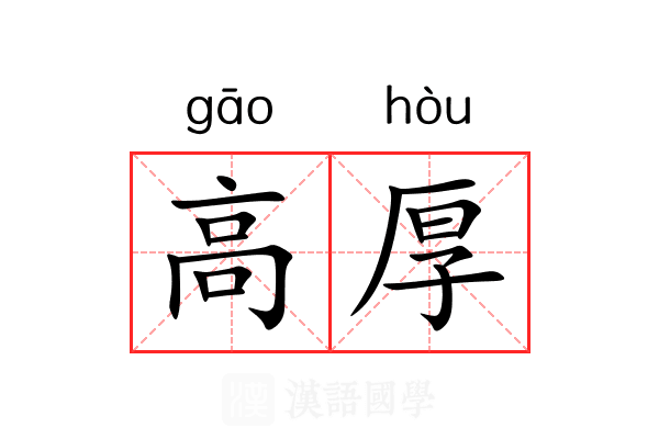引清•龚自珍 《明良论一》:“内外官吏皆忘其身家以相为谋,则君臣上下之交,何事不成? 汉•臣 董仲舒 曰‘被润泽而大丰美’者,此也,朝廷不愈高厚,宇宙不愈清明哉!”鲁迅 《书信集·致杨霁云》:“《集外集》止抽去十篇,诚为‘天恩高厚’。”