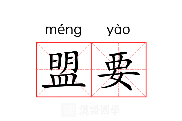 拼音 méng 部首 皿 总笔画 13盟 [ méng ] 1. 旧时指宣誓缔约,现指阶级的联合,国与国的联合。 如 盟军。盟友。同盟国。盟约。山盟海誓。 2. 指结拜弟兄。 如 盟兄。盟弟。 3. 中国内蒙古自治区的行政单位。 4. 发(誓)。 如 盟誓。 [更多解释]