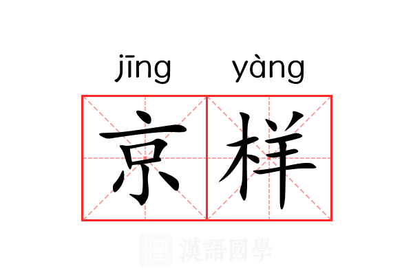 《敦煌曲子词·内家娇》:“及时衣着,梳头京样,素质艳丽青春。” 宋 陈亮 《念奴娇·至金陵》词:“地辟天开,精神朗慧,到底还京样。” 明 杨慎 《丹铅总录·地理·都鄙》:“都何以训美?都者,鄙之对也……天子所居,辇毂之下,声名、文物之所聚,故其士女雍容闲雅之态生。今谚云京样,即古之所谓都。”