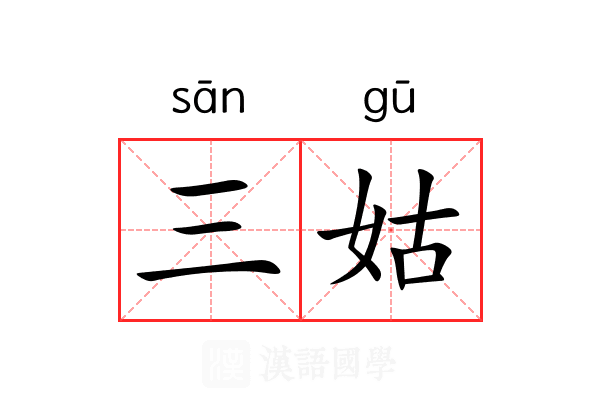 三姑的意思是:①.传说中的管蚕女神。②.指尼姑、道姑、卦姑。详“三姑六婆”。