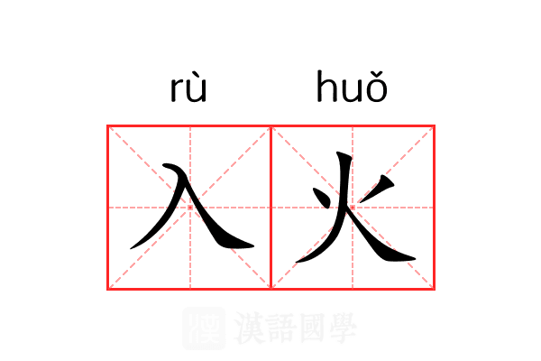 拼音 huǒ 部首 火 总笔画 4火 [ huǒ ] 1. 燃烧,物质燃烧时所发出的光和焰。 如 火力。火烛。火源。火焰。烟火。火中取栗(喻为别人冒险出力,而自己吃亏上当,毫无所获)。 2. 紧急。 如 火速。十万火急。 3. 指枪炮弹药等。 如 火药。火炮。 4. 发怒,怒气。 如 火暴。火性。 5. 中医指发炎、红肿、烦躁等的病因。 如 肝火。毒火攻心。 6. 形容红色的。 如 火红。火腿。 7. 古代军队组织,一火十个人。 8. 姓。 [更多解释]