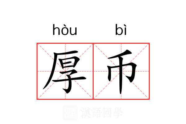 厚币的拼音是:hòu bì点击 图标播放厚币的发音。