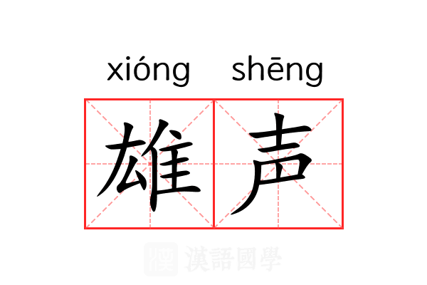 拼音 xióng 部首 隹 总笔画 12雄 [ xióng ] 1. 阳性的,与“雌”相对。 如 雄性。雄鸡。雄狮。雄蕊。雄蜂。 2. 强有力的。 如 雄壮。雄健。雄伟。雄厚。雄浑。雄劲。雄奇。雄踞。雄视。雄姿。雄心。雄关。雄图。雄辩。雄才大略。 3. 强有力的人或国家。 如 雄杰(a.才能出众的人;b.才能出众)。雄俊。英雄。枭雄。奸雄。称雄。 [更多解释]